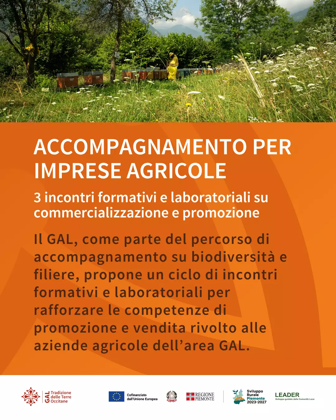 è nostro piacere informarvi che il GAL Tradizione delle Terre Occitane, nell’ambito delle attività di accompagnamento su biodiversità e filiere, prosegue il percorso dedicato alle aziende agricole dell’area GAL, con l’obiettivo di rafforzare le competenze nella promozione, comunicazione e commercializzazione dei prodotti locali.