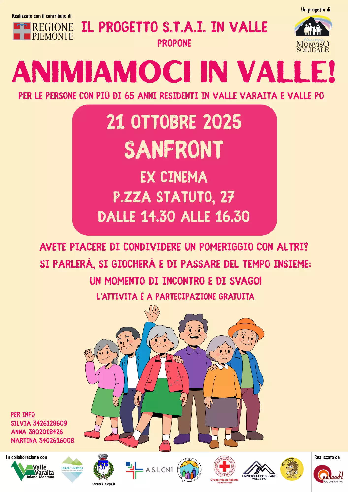 L'équipe del progetto S.T.A.I. in Valle organizza un pomeriggio di incontro e svago con animazione destinato alle persone over 65 della Valle Po e Valle Varaita.